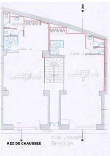 Ce local commercial à usage mixte bénéficie d'une excellente visibilité grâce à ses deux grandes vitrines sur rue. Actuellement configuré en showroom de prestige, l'espace se compose de deux locaux connectés l'un à l'autre au rez-de-chaussée.